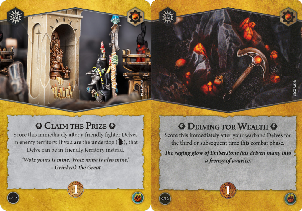 Speaking of hard to counter objectives, Delving for Wealth is the other restricted card in Pillage & Plunder. It, like Claim the Prize, doesn’t care what your fighters are delving as long as they do it three times. Again, this likely won’t be the main route to scoring this objective but there are a few niche cases where it can come in handy. For instance, delving AG tokens if you’re up against Deadly Synergy in order to never hold a treasure token which can block them from scoring Closed Down.