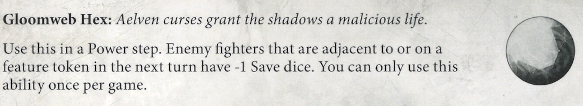 Gloomweb Hex is another seven-hex bubble that can take advantage of AG tokens as well. It makes it much harder for the opponent to position their valuable fighter somewhere where they can’t be hit by this ability and made susceptible to a deadly elf dive, even if that target isn’t intentionally standing on or near a token.