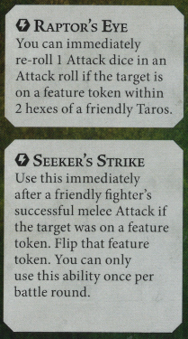 Re-rolls are good, and Raptor’s Eye (along with a conveniently placed Taros) can grant it for your fighters when the enemy chooses to stand on an AG token. Technically, Xandire’s Truthseekers also can use Seeker’s Strike to flip any feature token, but there’s zero reason to do this to an AG token since they’re identical on both sides. Maybe you really prefer the “jar of magic water” look over the “bathtub of magic water” look. I won’t judge you.
