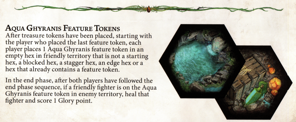 Aqua Ghyranis Feature Tokens have a fair bit of impact on the game even outside of their bonus glory and healing. Some warbands and decks picked up a little boost merely from the existence of more feature tokens in the game. Keep a look out for any future warbands or decks that come out and pay close attention to whether they mention feature tokens, treasure tokens, or cover tokens – you never know when something will turn out to be slightly better or worse than it appears at first glance.