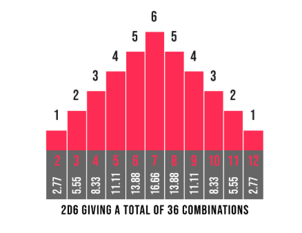 This isn’t going to come as a shock to anyone reading the article but that’s the dice curve, so to roll a 6 you’ll hit that 72% of the time (6+7+8+9+10+11+12). This isn’t totally relevant, however, because you’ll usually have bonuses to cast in The Old World which means the charts below becomes what you need to be aware of.