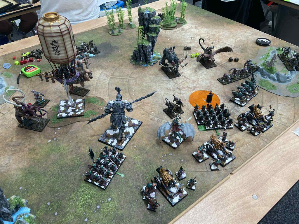 The above picture is from one of my recent event games with Grand Cathay. My Shugengan has used Column of Crystal to deny the charge but has also cast the Cathay spell Spirits of Wind & Shadows (prior to moving away) to slow down the Giant Chaos Spawn; the Spawn was the more important target but the Column allows me to double down if I get them both off, or have a built-in back up plan if I hadn’t cast the other spell first. It might seem like overkill, but if it works it works, and that’s far better than it not working and you losing units as they’re in fights they have no right to be in.