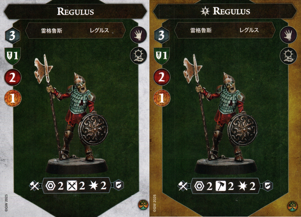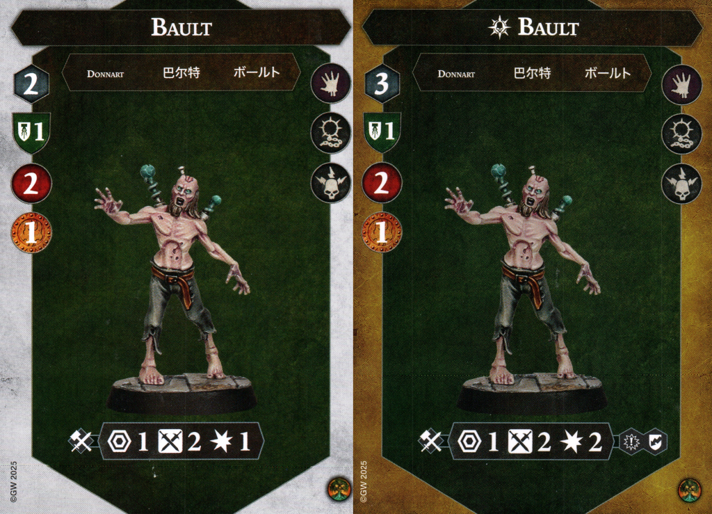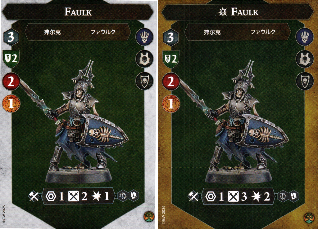 Faulk is our first grave guard and sets the tone for the rest of them. A move of 3 like the rest of the warband is fairly average. Only having 2 health is quite a problem, but fortunately it’s guarded behind a 2 shield save value. That’s a tough nut to crack. He’s also a bulwark fighter and as a result will pick up a guard token every once in a while.