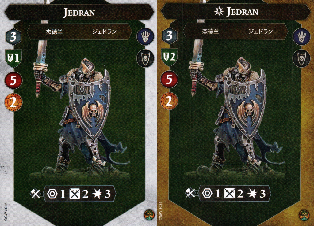 Jedran’s a beast with 5 health. He, like his dad, goes from 1 shield to 2 once inspired so picking that inspire up is highly valuable. He does sport the bulwark icon, so he can pick up free guard tokens from the occasional critical result on a save dice. Neat.