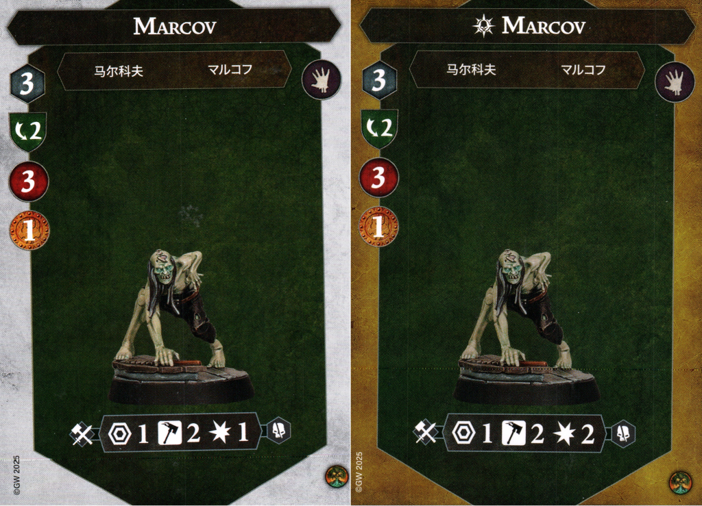 The apprentice necromancer of the bunch is a bit weedier than his boss. One fewer point of health but starting (and staying) on 2 dodge make Marcov the best candidate for a guard token in this bunch.