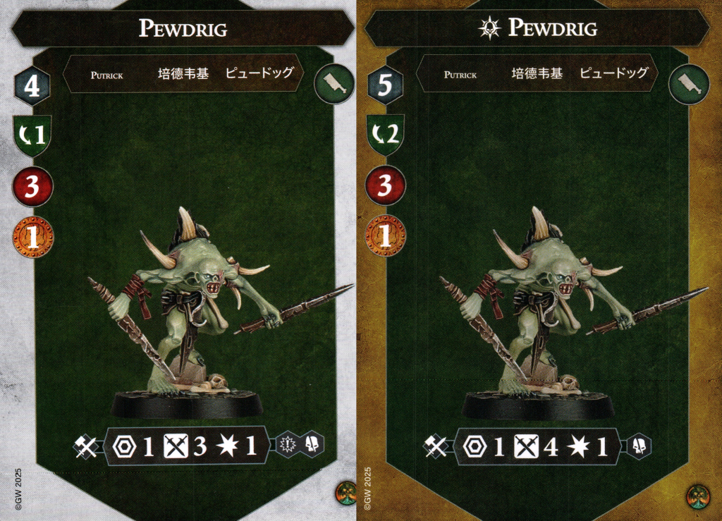 Pewdrig has a fairly similar profile to Carnskyr – he’s a point of movement slower (until inspired at least) and no fly which slows him down a little bit. Two dodge is, as always, a great candidate for guard tokens.