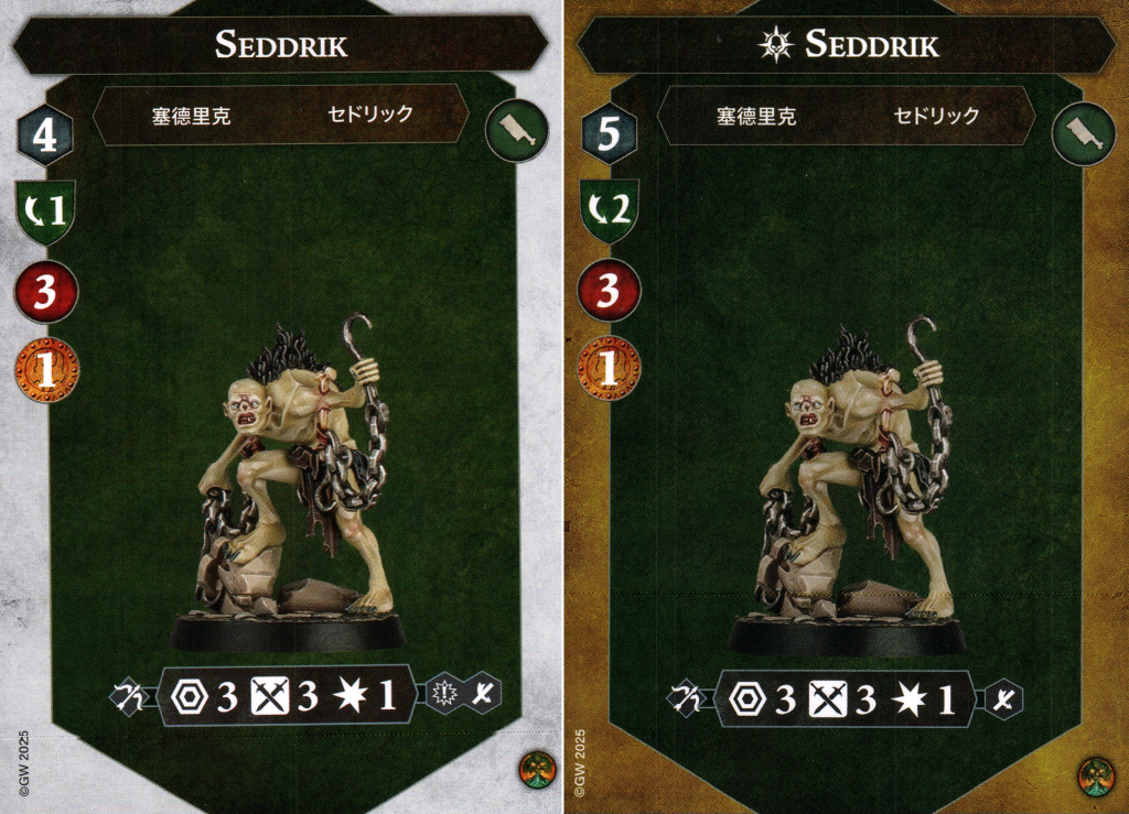 Seddrik is the final fighter in the warband and the only one with a ranged attack. Seddrik’s defensive profile is a mirror of Pewdrig’s, which means it isn’t very impressive. The three non-chefs in this warband really do want to inspire ASAP so they can pick up that extra save dice.