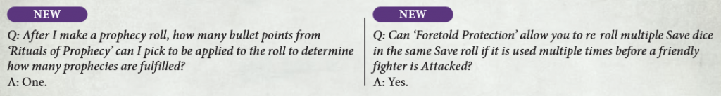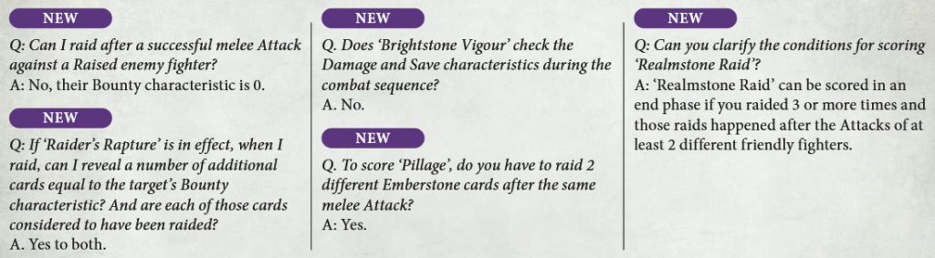 No FAQs for Blood of the Bull, Kurnoth’s Heralds, Deadly Synergy, or Hunting Grounds. This isn’t unusual given they were just released and there probably haven’t been too many questions submitted yet (although I’ve certainly sent some in!). Hopefully we’ll get documents for these four releases in a reasonable time frame.