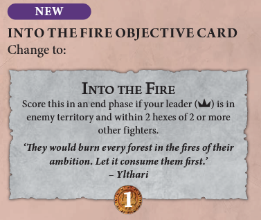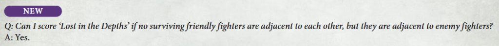 The addition of “or more” to the end of this objective makes it a lot less painful to score. Technically, the previous version required your leader to be in range of exactly 2 other fighters – if there was a 3rd nearby, you couldn’t score it.