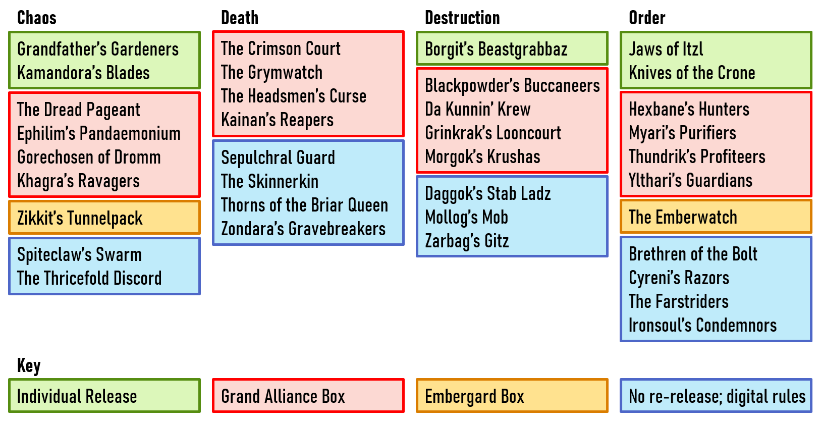Chart of the sources for the Organized Play legal warbands in Underworlds. Credit: Jake Bennington
