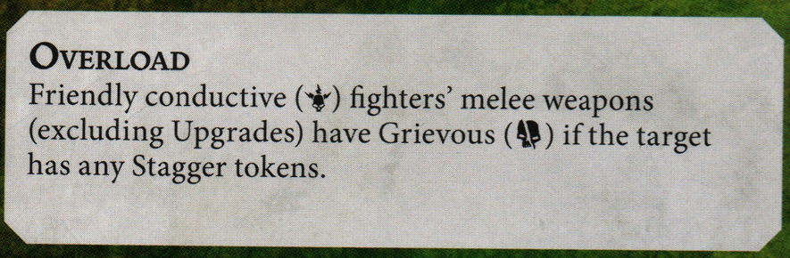 This weird weapon has still yet to find its home. In theory, you could put it onto a high health fighter who has taken a lot of damage to have a very accurate attack… but it’s only 2 damage. Most fighters who can take 3-4 damage and still be alive and kicking already come with profiles that are as good as this or better. It’s definitely one of the weakest weapons with the least utility in the game as of now. If anyone’s found a use for Fuelled by Pain, I’d love to hear it – drop a line in the comments or hop into the Goonhammer Discord to tell me.
